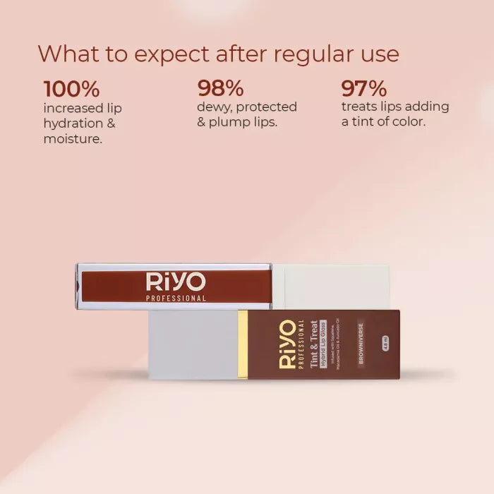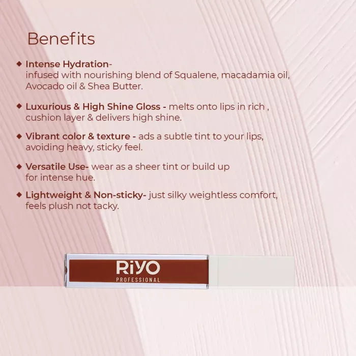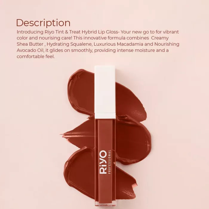 Introducing Riyo Tint & Treat Hybrid Lip Gloss- Your new go to for vibrant color and nourising care! This innovative formula combines Creamy Shea Butter , Hydrating Squalene, Luxurious Macadamia and Nourishing Avocado Oil, it glides on smoothly, providing intense moisture and a comfortable feel.