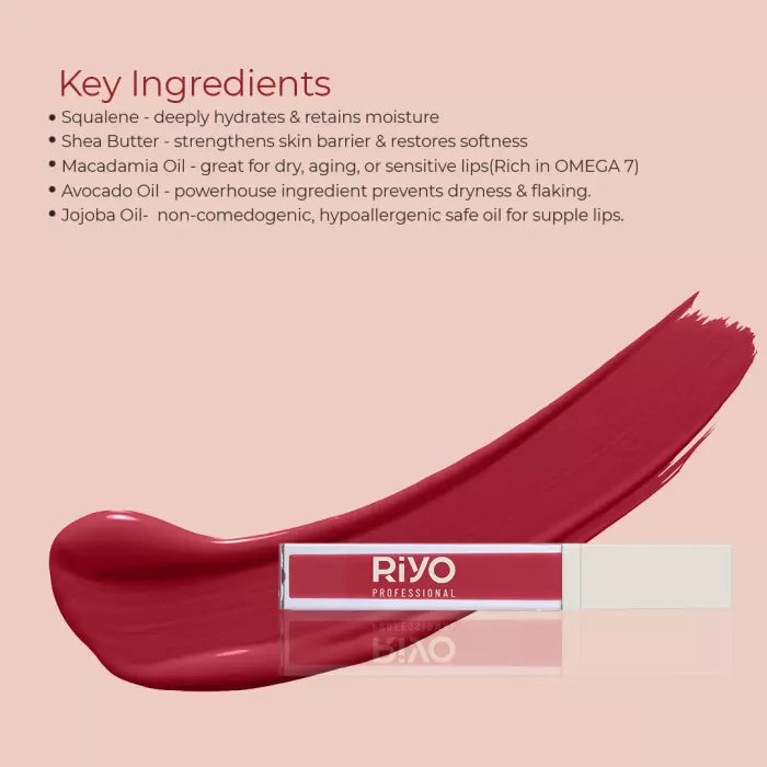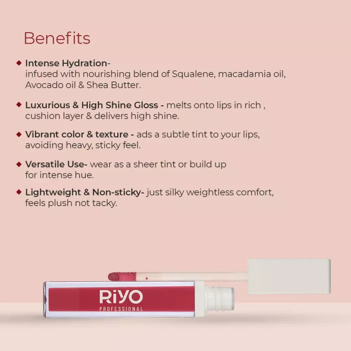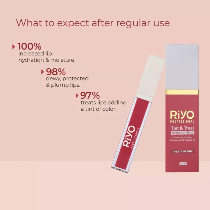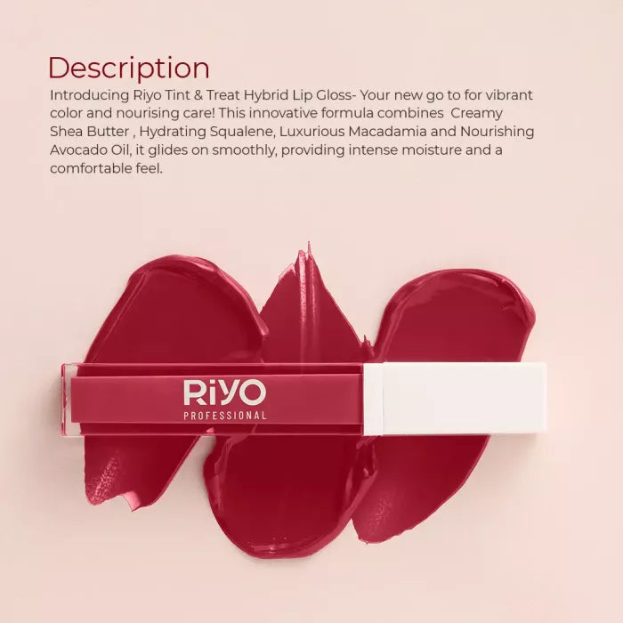 Introducing Riyo Tint & Treat Hybrid Lip Gloss- Your new go to for vibrant color and nourising care! This innovative formula combines Creamy Shea Butter , Hydrating Squalene, Luxurious Macadamia and Nourishing Avocado Oil, it glides on smoothly, providing intense moisture and a comfortable feel.
